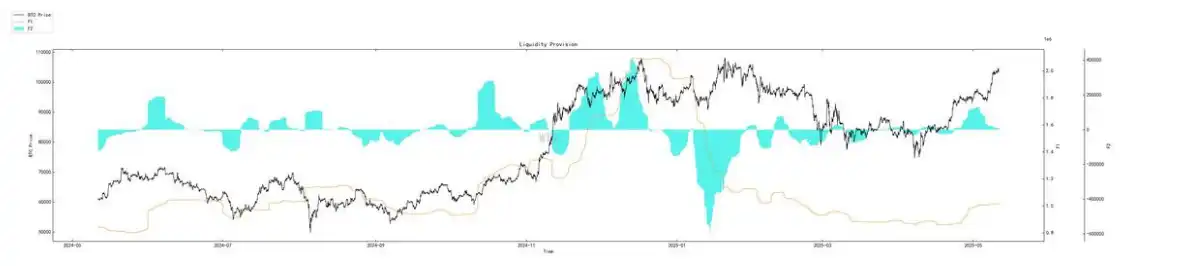 • BTC 价格与⾮流动性供应增加同步上涨,显⽰出健康的⽀撑。