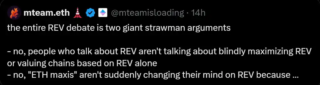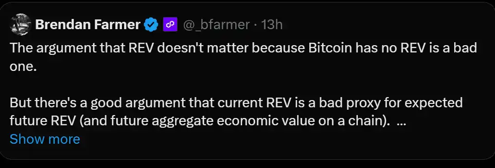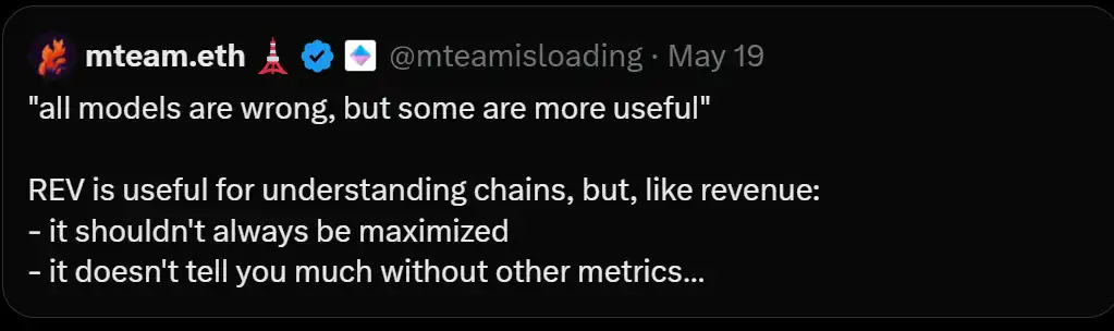REV 是由 @Blockworks_ 标准化,并由 Blockworks Research 团队(@blockworksres)广泛推广的。Jon Charb(@jon_charb)也是推动 REV 作为理解区块链指标的重要贡献者。