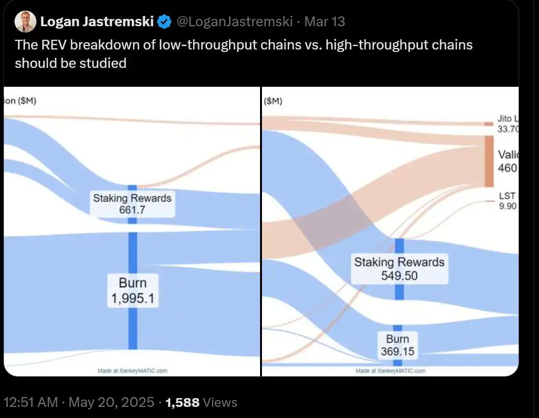 「REV 包含协议内的交易手续费和协议外用户为交易执行支付的小费,因此它衡量了链上交易的整体货币需求。」—@blockworksres