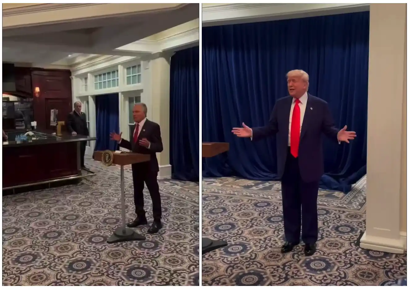 在主持人简单介绍后,特朗普走出幕布,向现场的嘉宾简单致辞。有趣的是,在为特朗普做出场介绍时,主持人再次「致敬人民」,用到了「加密总统」、「第 48 届美国总统」等十分「反建制」的词汇。