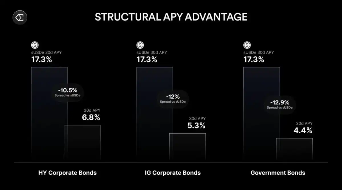 推动这一增长的是链上资金费率与传统利率之间的套利。只要存在显著的收益率差距,资金就会从低利率市场流向高利率市场,直到达到平衡。因此,USDe 成为连接加密收益与宏观基准的枢纽。