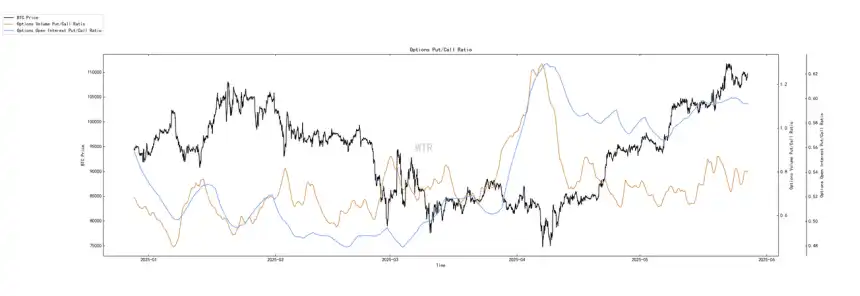 看跌期权⽐例处于中⾼位,交易量处于中位。
