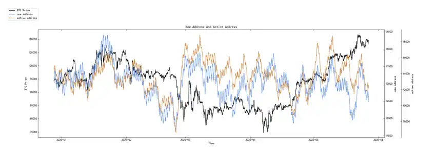 (下图 新增地址和活跃地址)