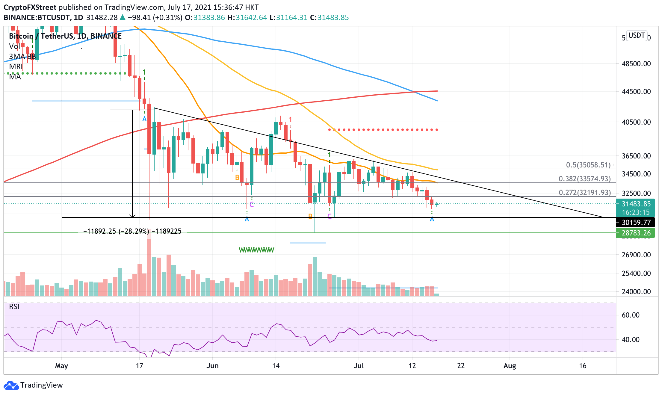 比特币价格需要确保每日收盘价高于 27.2% 斐波那契扩展位 32,191 美元,才能实现看涨预测。如果达到这个水平,BTC 可以标记 38.2% 斐波那契扩展水平,与33,574 美元的 20 天简单移动平均线 (SMA)重合。