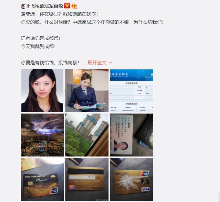 这个蒲菲迪上来就是一顿太极拳,本来说好一个星期给,结果一个月过去了,叶飞一毛钱都没看到。