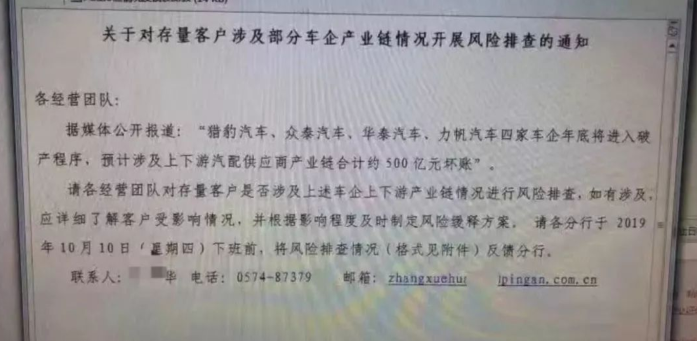 确认:上海新能源汽车展延期,还有四家车企被传将申请破产近日有消息称,原定于10月30日-11月1日在上海举办的新能源汽车自动化技术展因故延期。工作人员表示,延期情况属实,延期的主要原因是新能源车企的补贴弱化,导致新能源汽车厂商的参展意愿减弱。10月9日,21世纪经济报道记者获取了某股份银行一则展开内部风险排查的通知。通知要求,各经营团队需对存量客户是否涉及四家车企上下游产业链情况进行风险排查,该四家车企为猎豹汽车、众泰汽车、华泰汽车、力帆汽车。