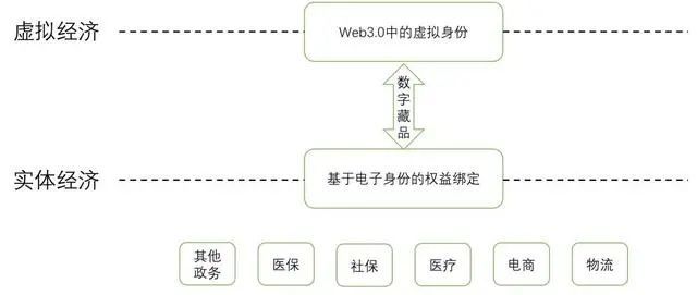 有了现实身份的绑定、虚拟世界的绑定,以及基于数字藏品的权益绑定,中国的Web3.0可能会像下面这幅图: