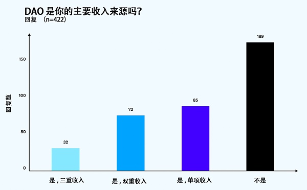只有当 DAO 成为主流的时候,以X赚钱(X-to-earn)的机会才会变成主流。DAO 显示了光明的前景,但现在还很早期,在成为工作的未来之前还有很长的路要走。在近期 Gitcoin 和 Bankless 对422个 DAO 贡献者的调查中,不足 45% 的受访者表示 DAO 是他们主要的收入来源。