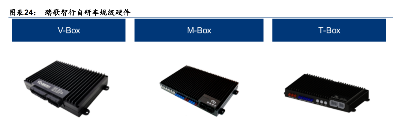 踏歌智行的智能矿山解决方案将不同功能分别打包进三个子系统内,高度集成化的系统分工明确,运作效率高,降低管理复杂度与成本,在系统产品架构上具有独特的竞争优势。此外,为了能够对潜在的碰撞风险进行安全预警,踏歌智行的解决方案中还包括一套矿卡安全防护系统,由三大功能模块组成,模块化的架构设计也造就了它易拓展、兼容性好的竞争优势。此外,踏歌智行目前也是唯一拥有成熟的露天矿场景专用智能车载硬件的厂家,踏歌智行自研的车载硬件计算平台 M-box 等产品已通过多项车规级测试,及 3C 及入网认证。