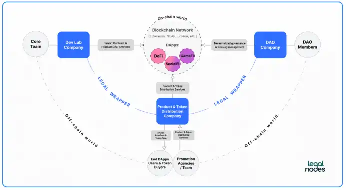 DAO 法律外包装(Legal Wrapper)是一种针对 DAO 的法律框架或法人组织的集合,为 DAO 带来了在有关司法部门管辖区中的公认诉讼地位。它的本质是把 DAO「打包」在一个法律框架内,从而使得 DAO 可以与传统法律规范开展连接,在保证遵循有关法律法规,维护 DAO 组员有限责任公司的前提下,连通 DAO 与真实世界交互的公路桥梁。