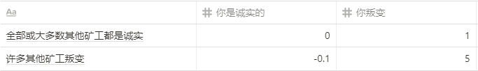 我们可以用收益矩阵非正式地描述每个场景,其中「叛变」意味着「下载并使用执行重组的软件」。收益是「短视的」,没有考虑长期后果。