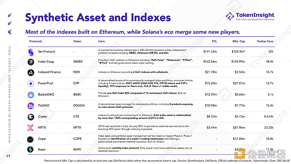 其实大多数这类指数协议都是构建在以太坊上的,此处一共列出10个指数项目: