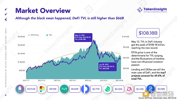 其中七大项目占当前(6月30日)的锁仓量的69.5%,它们分别是: