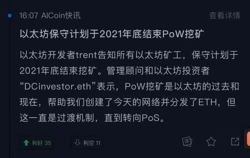 其次,如此重要的消息,并不是eth团队的核心成员口中说出,特别是V神本人并没有对此确认;而发布消息的本人本意,更像是告诉大家要以2021年底作为显卡挖矿作为结束,之后就要另谋出路。