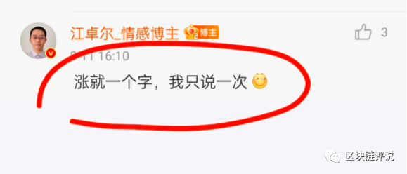 最近江卓尔心情也很不错,直接飚起歌来了,说比特币涨就一个字,我只说一次。
