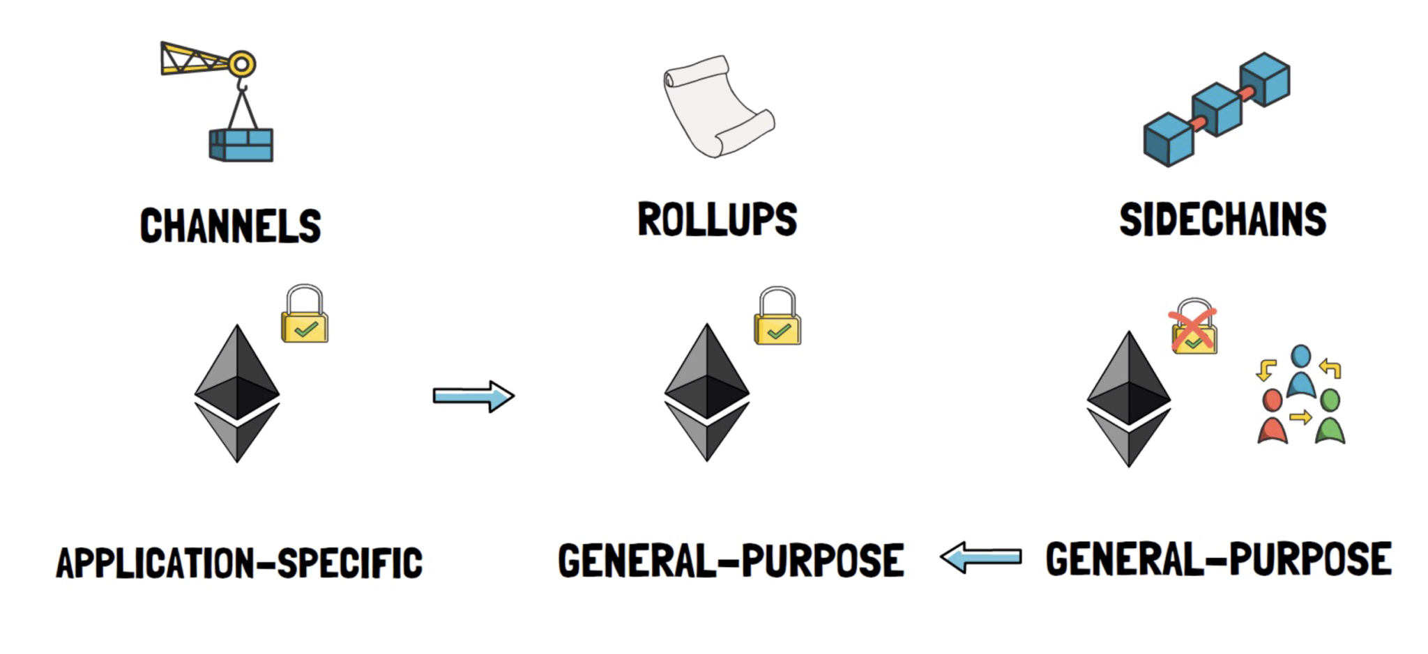 大多数rollups的目标是通过创建一个通用的扩展解决方案,同时仍然完全依赖以太坊的安全性,来实现这这两个方面的最佳效果。