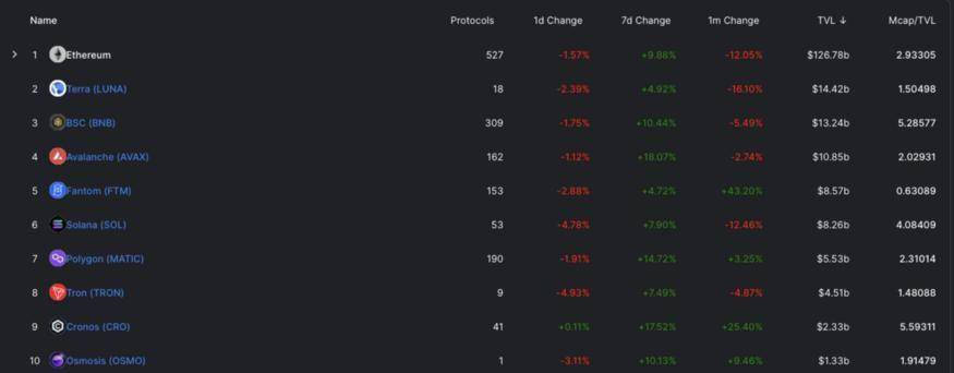 虽然108.5亿美元似乎是一笔巨款,但与其他区块链相比,这实在是微不足道:事实上,在撰写本文时,以TVL衡量,所有区块链的总价值为2085.7亿美元。AVAX的TVL排名第四,约占总TVL的5%。