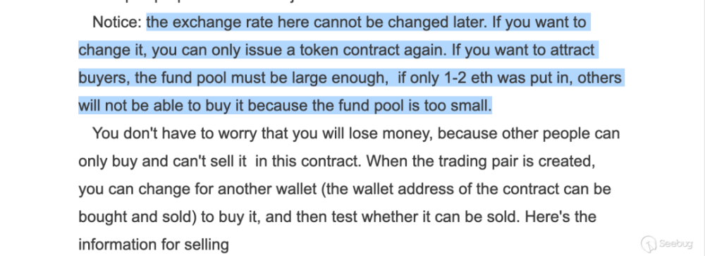 如果你想吸引买家,资金池必须足够大,如果只投入1-2个ETH,其他人将无法购买它,因为基金池太小。即希望部署合约的用户在资金池中添加更多的eth数量。攻击者为什么要单独呢?