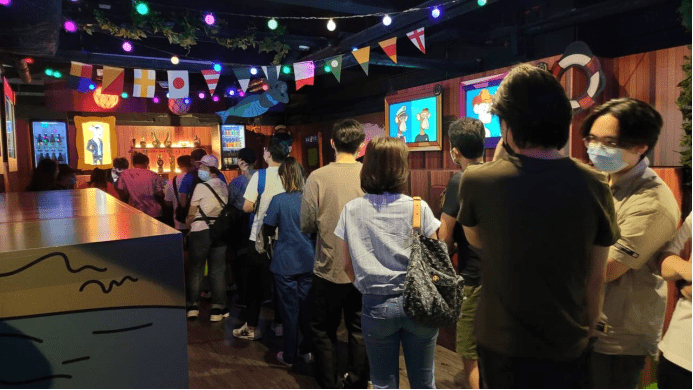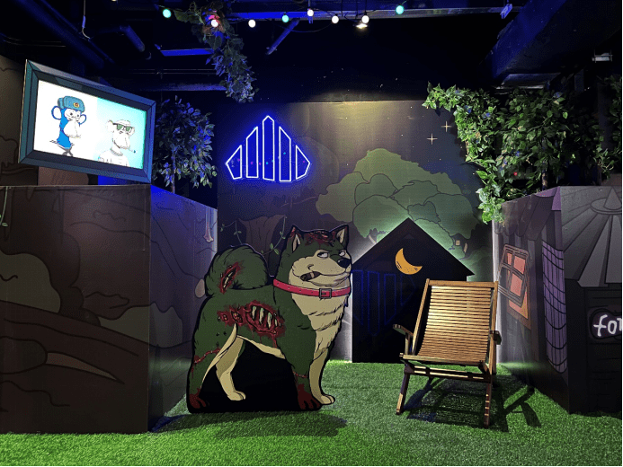 整个会场不单单只展示NFT作品,BlueArk从BAYC的理念中取得灵感,配合其丛林及酒吧的风格,将“无聊猿“搬到现实世界。除此之外,Dough-Boy与多位NFT收藏家合作,将自己的艺术创作“Gummy Villain”与持有无聊猿#8155的收藏家进行联动,推出二次创作”Bored Ape Gummy“项目。值得一提的,是BAYC #8155头像早前以超过106枚以太坊(当时价格超过32万美元)成交。