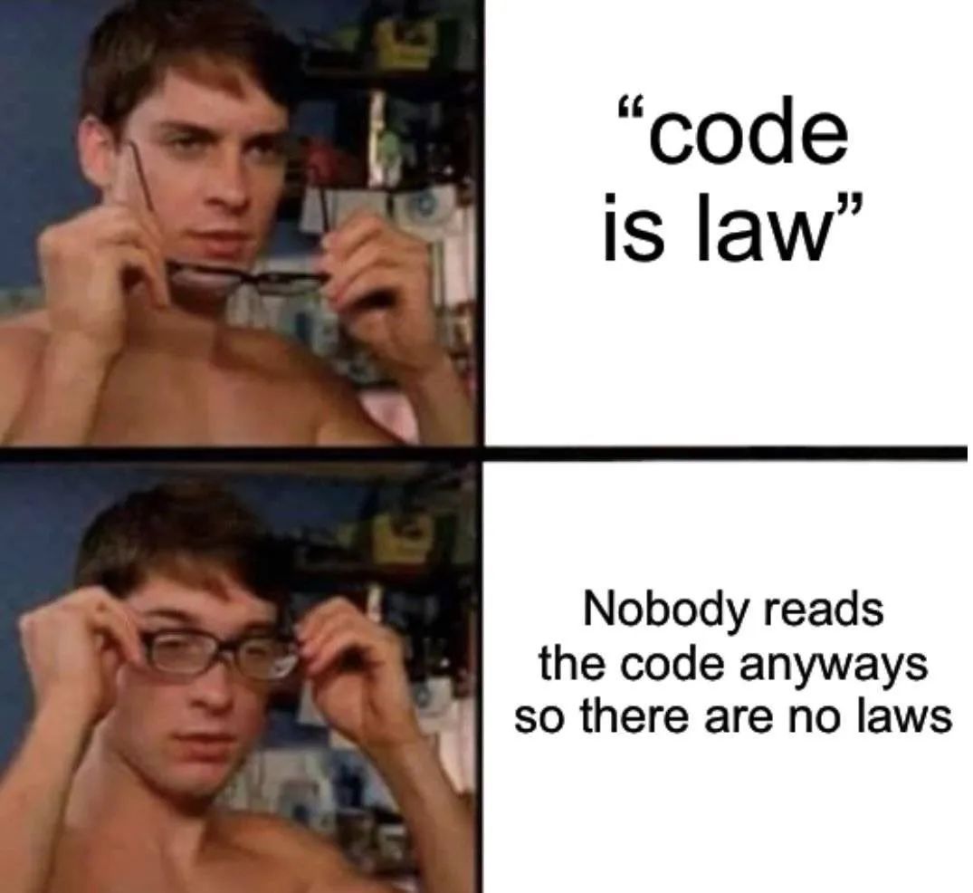 Web3 原住民和 “法律” 的直接交互非常多. 相比于现实中的法律, Web3 原住民也对 Code Law 更加了解、更加熟悉. 但是正如法律, 代码的修改、治理和推动也是非常艰难的, 更加中心化.