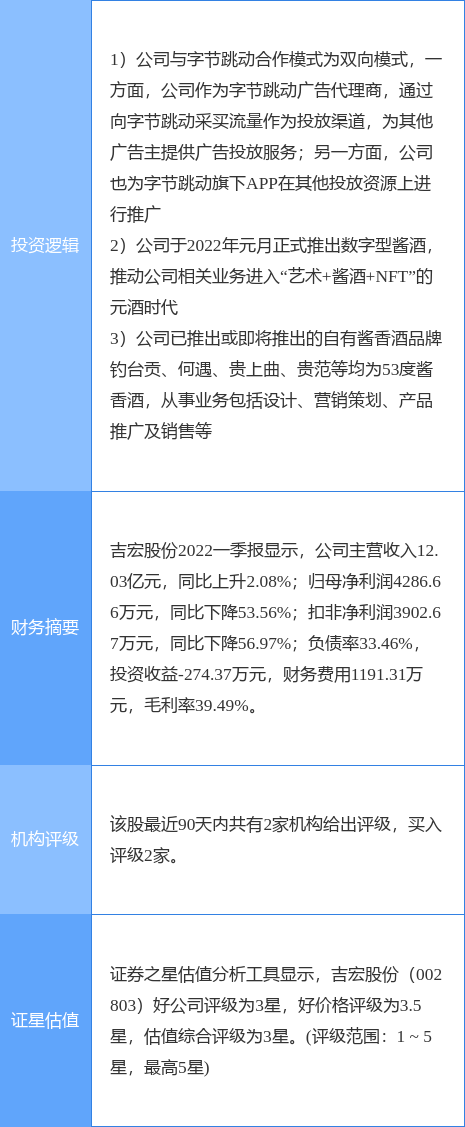 6月8日吉宏股份涨停分析:白酒,NFT,字节跳动概念股概念热股