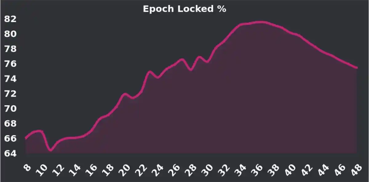 上线后 Velo 的质押率一直处于上升趋势,高点时的 70%-80% 是很高的锁仓比率(同样采用 ve 模型的 Curve 目前的质押率为 38.8%),不少人质疑随着去年 11 月开始的「Tour de OP」计划进入尾声,400 万 OP 奖励的激励告一段落,锁仓的激励会进一步下跌,形成潜在的抛压。但目前 Velo 质押率仍旧保持一个良好水准(~70%)。即将到来的 V2 升级也旨在鼓励更多持有者锁定他们的代币,值得保持关注。