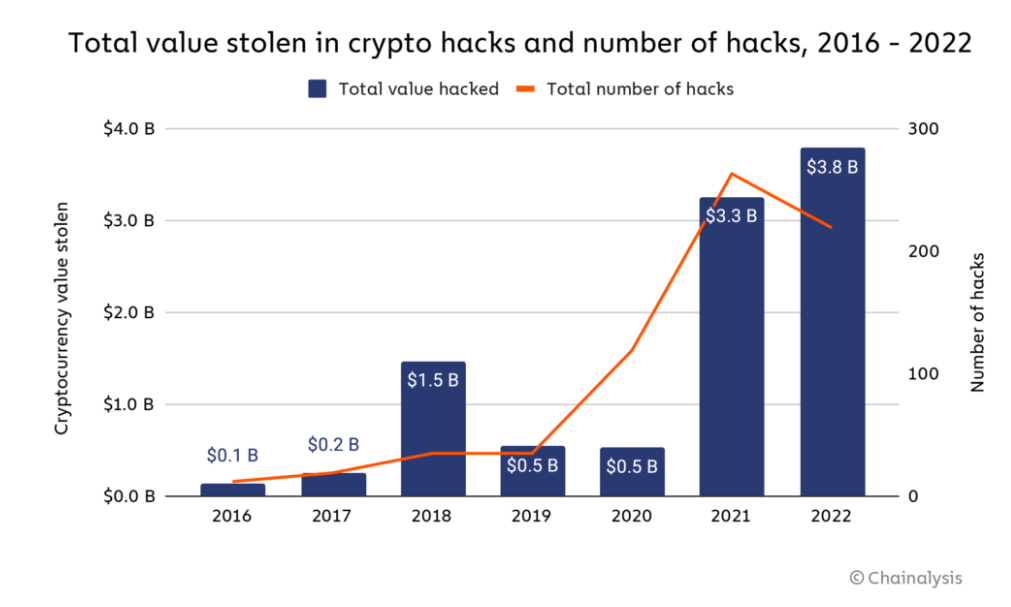 但经过几年的发展,DeFi 领域也累计遭到了数十亿美元的盗窃 [1],即使最为狂热的信徒也会不断质疑它是否能成为未来金融的主流。其中仅在 2022 年黑客通过 DeFi 协议和跨链桥盗取的资金就超过了 38 亿美元,2022 这也是加密史中盗窃金额最多的一年。如果想在未来让更庞大的群体进入加密世界并依赖 DeFi,安全性是首要考虑解决的因素。