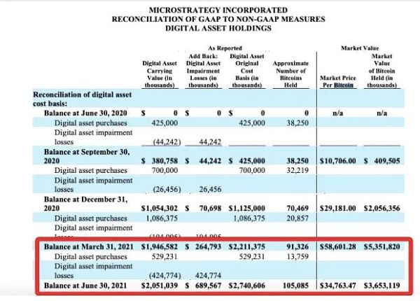 由于二季度 BTC 价格下跌,因此财务报表中也对 BTC 资产进行减值处理。(Odaily星球日报注:根据美国会计规则,当数字资产公允价值(即市场价值)低于账面价值(即投资成本),将要求企业确认减值损失。)