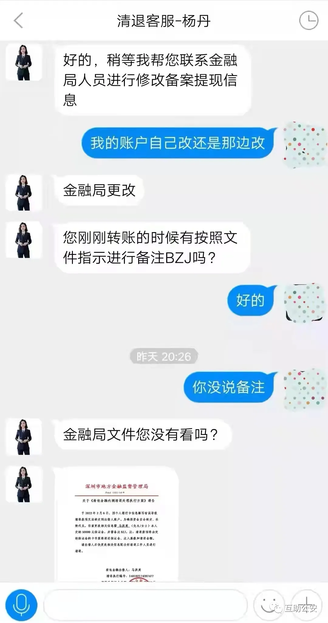 随着,国家对虚拟数字货币的全面整治,诈骗分子冒充虚拟货币交易平台客服,通过邮件、短信、电话等方式联系虚拟货币平台上的虚拟货币持有人,以“清退兑付”为由取得持有人信任后,并按照对方指导下载虚假APP,然后在APP内进行虚假投资向骗子指定账户转账汇款实施诈骗,互助县的雷女士和马先生就遭遇了此类诈骗,损失惨重,下面就来看看骗子的诈骗手法。