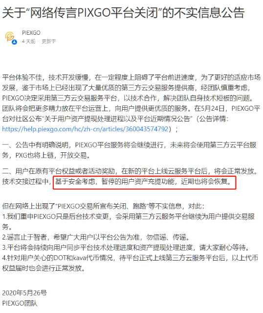 值得注意的是,PIEXGO官网的这则公告甚至连自己的交易所名字都写错了。大家可以仔细看一下。