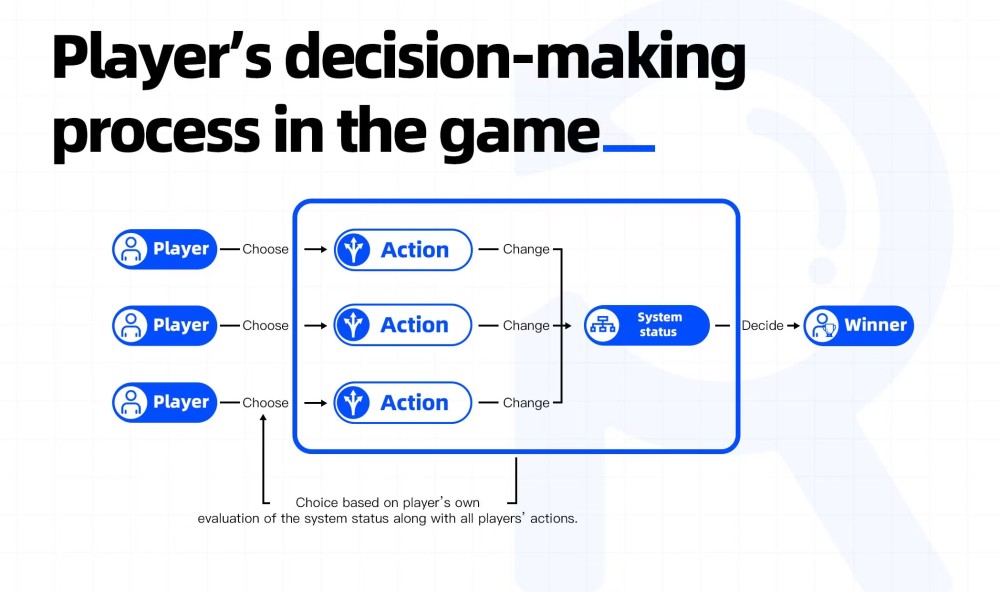 在 DeFi 和 GameFi 的金融属性背后,参与者通过评估其他参与者的平均行动共识(即大多数参与者将会采用的行动)来调整博弈策略进行游戏。为什么不是单纯的决策,而是动态的博弈?因为玩家 A 的决定会影响玩家 B 的决定,进而影响玩家A自己的决定。因此,玩家将体验到游戏的复杂性,因为他们的决定(或有时是预期的决定)会同时发生在所有玩家身上。游戏的发展将是多维的并且实时发生,特别是在具有足够深度和流动性的市场中。