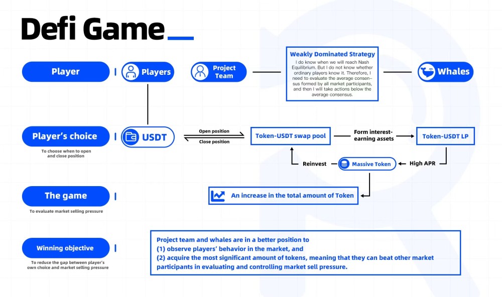 DeFi 项目团队善于利用独特的 DeFi 机制来提高玩家对项目的评价和期望,增加市场参与者的平均共识,最终延长项目生命周期(即延迟纳什均衡)。