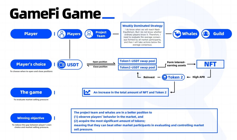 本文讨论了GameFi的独特功能及其固有的系统属性,它被游戏系统中的多方使用,以促进达成共识。以GameFi的各种利益群体为例,包括开发者、公会、普通玩家。游戏中有玩家可以看到整个市场的全景,他们可以通过预判其他玩家可能采取的行动而行动,选择赢面更大的行动路线以在游戏中获得优势。