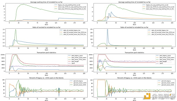 我们有了新的模拟,来分析遗留交易的行为以及在一个单一网络上的1559式交易
