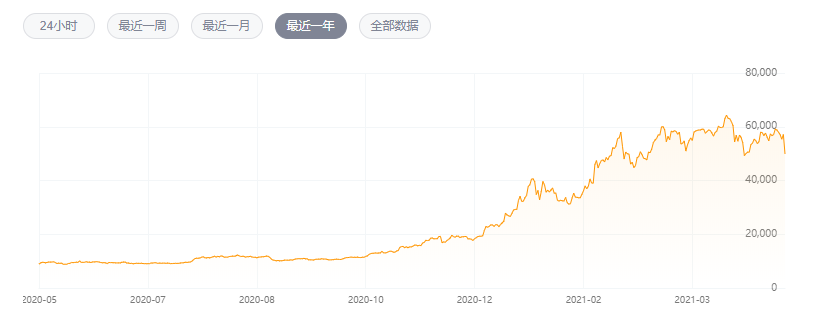 马斯克对比特币的「力挺」,使得萎靡不振的比特币在今年进入了疯狂的牛市周期。从2020年1月开始,比特币的币值从不到30000美元一路疯涨至64000美元,涨幅高达两倍有余。
