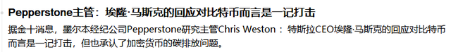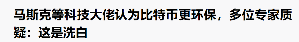 这种观点,自然受到多位可再生能源专家的怀疑。专家表示,目前几乎没有证据表明比特币矿商更喜欢使用可再生能源发电。随着讨论的不断发酵,比特币的碳足迹已成 为国外社交媒体激烈争议的主题,这对一心想要塑造「反碳排放」形象的马斯克来说自然不是什么好事。半个月后,马斯克换上了“环保卫士”的面孔,就像之前什么都没有发生过一样。