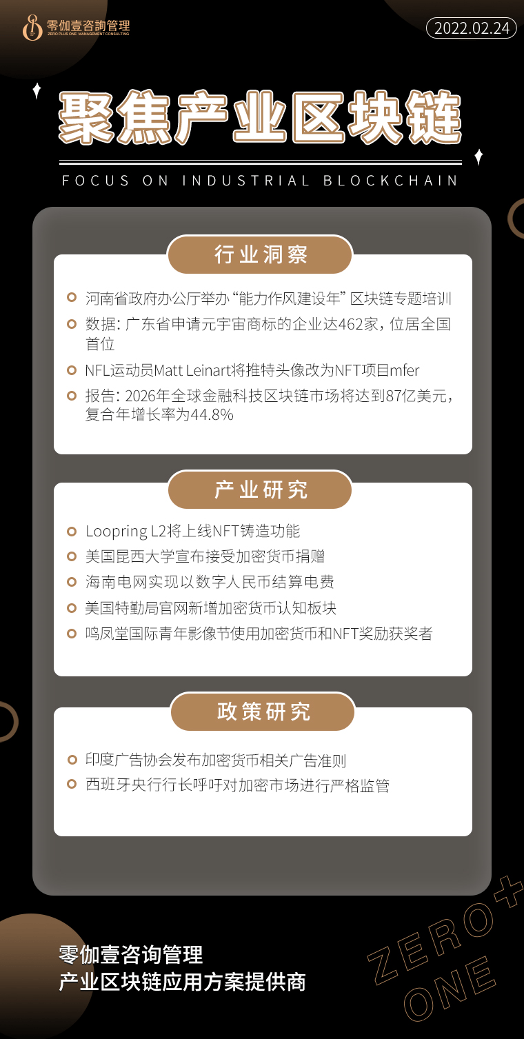 2.24产业区块链新资讯,零伽壹整理收集分享