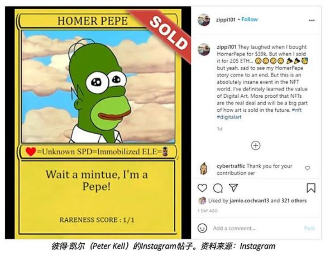 2016年,基于Counterparty协议的加密交易卡——“悲伤蛙”表情包(Rare Pepes)成为风靡一时的NFT应用。初衷就是收集悲伤蛙的全套表情包,任何人都可以主动提交自己找到的珍贵稀有的悲伤蛙。