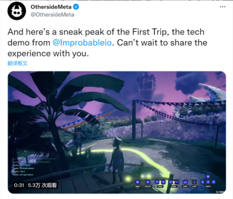 5 月 12 日,Yuga Labs 元宇宙项目 Otherside 公开元宇宙游戏演示片段,由 Improbable 提供技术支持。