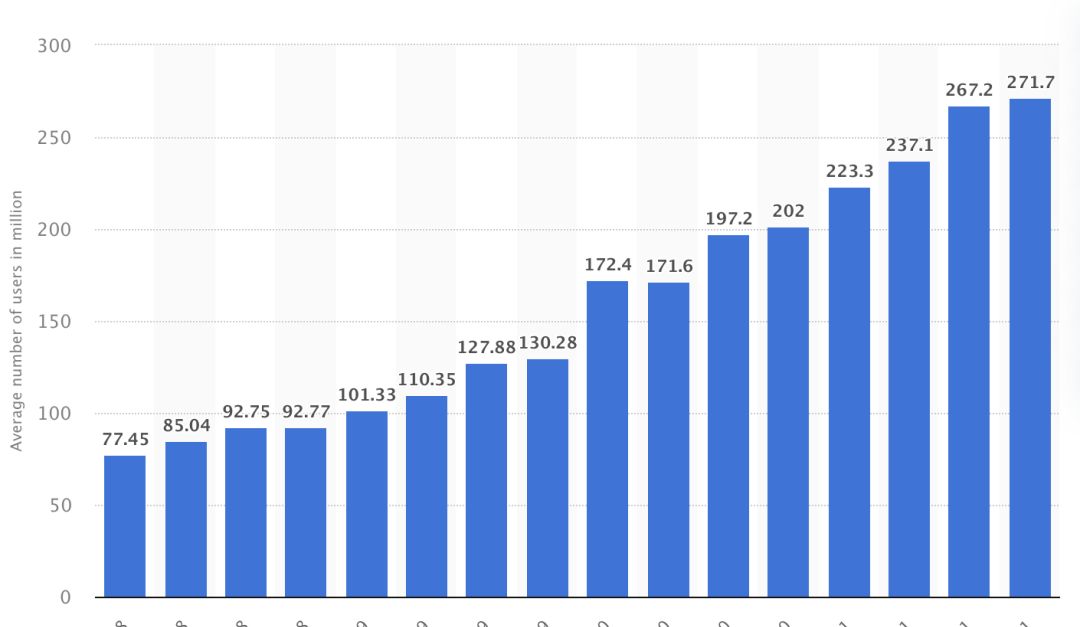 虽然市值蒸发,但B站的用户量确实一直在稳定增长的,我们可以一起来看下2018年第一季度至2021年第四季度Bilibili公司的平均每月活跃用户数。