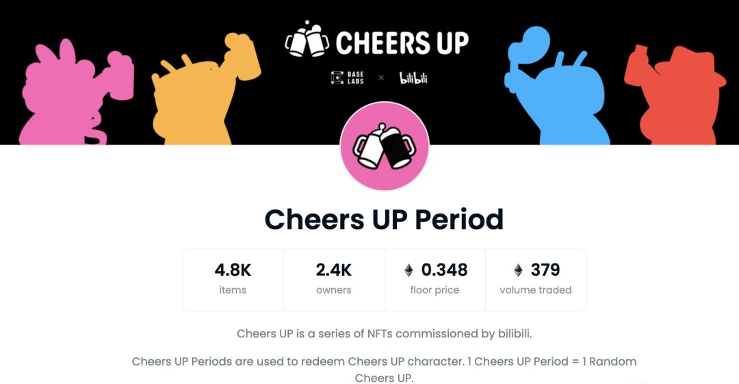 哔哩哔哩(Bilibili)授权在海外发布“Cheers UP”系列NFT,共计10,000个头像类NFT。打开网站——