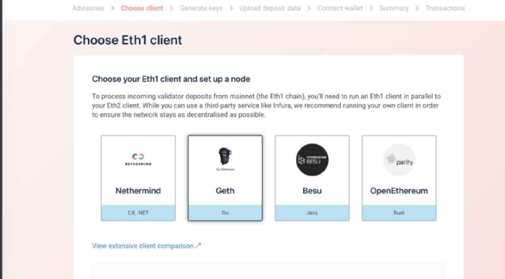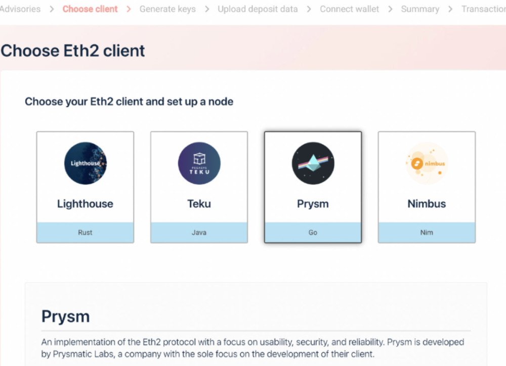 要质押,就需要运行ETH2客户端,它是区块链的本地副本。这可能需要一段时间才能下载到用户的计算机上。