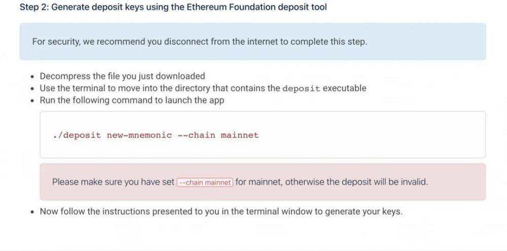 下载并设置了Deposit CLI软件之后,可以使用下面给出的说明获取安全密钥对。