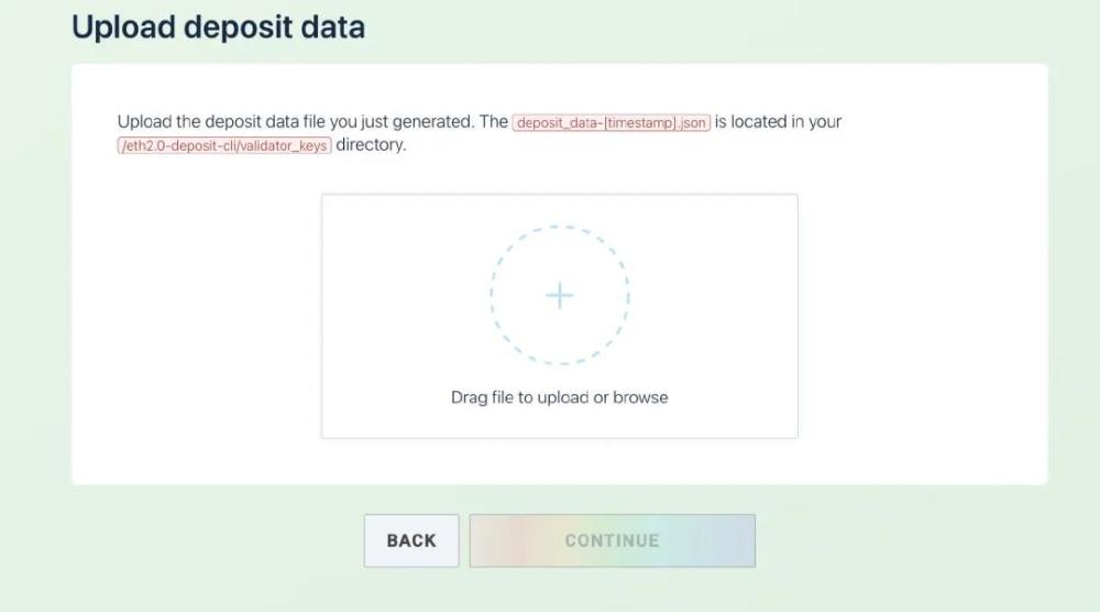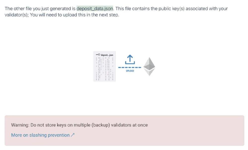 deposit_data JSON键是与验证器节点关联的公钥,在接下来的步骤中需要上载此键