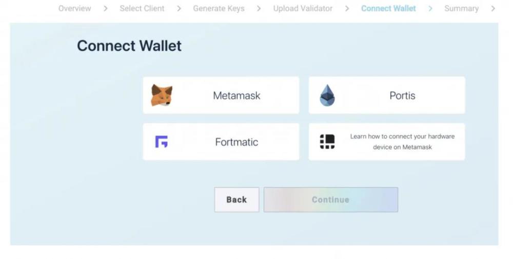 如果能够成功上传存款JSON数据文件,那么现在需要连接支持ERC-20协议的钱包。你用户可以从弹出的选项中使用任何ETH钱包,如Metamask、MEW等。