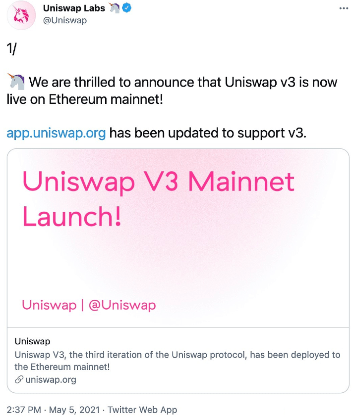 Uniswap V3主网已启动