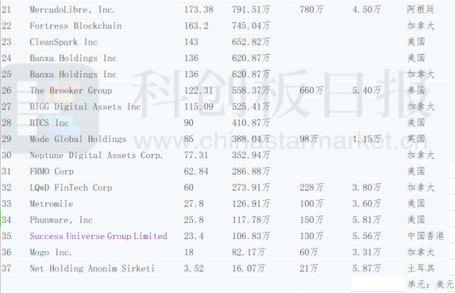 但不是所有上市公司都像Microstrategy那么好运,通过投资比特币赚20多亿美元。据《区块链日报》记者统计,37家持有比特币的上市公司中有7家买进的比特币目前处在亏损状态中。