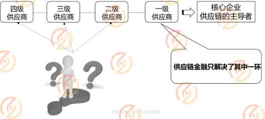 在供应链金融中,最重要的就是依托核心企业的信用,服务其上下游中小企业,但是在多级供应商模式中,一级之后的供应商无法依托核心企业的信用做金融,信用无法传递给需要金融服务的中小企业,造成融资难、融资贵。