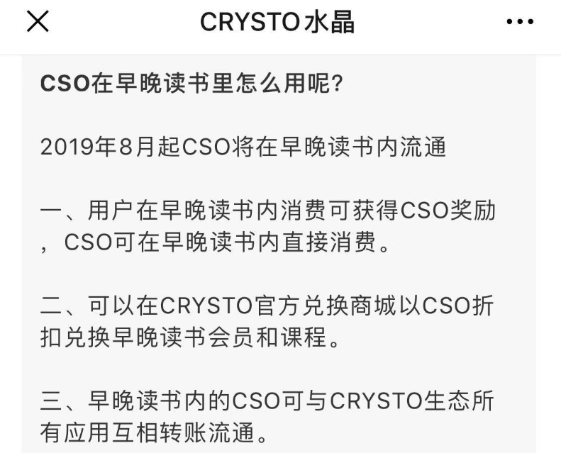 而凌晨暴跌的CSO背后的Crysto项目在诞生之初,就与李国庆一同出现在公众面前。界面报道显示,李国庆告别当当网后的去向,是加盟CRYSTO旗下DAPP任CEO,且任Crysto董事长,并曾受邀担任CEO。2月,李国庆还曾在CRYSTO官方社群进行社群直播并回答用户提问。