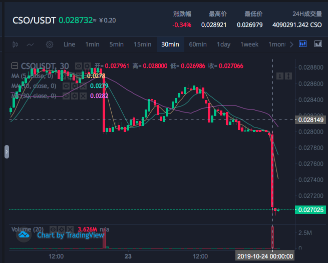 10月24日零点,CRYSTO项目关联虚拟币CSO价格插针式下跌。CRYSTO项目在2018年7月问世之初,疑因与当当网创始人李国庆捆绑营销受市场关注。